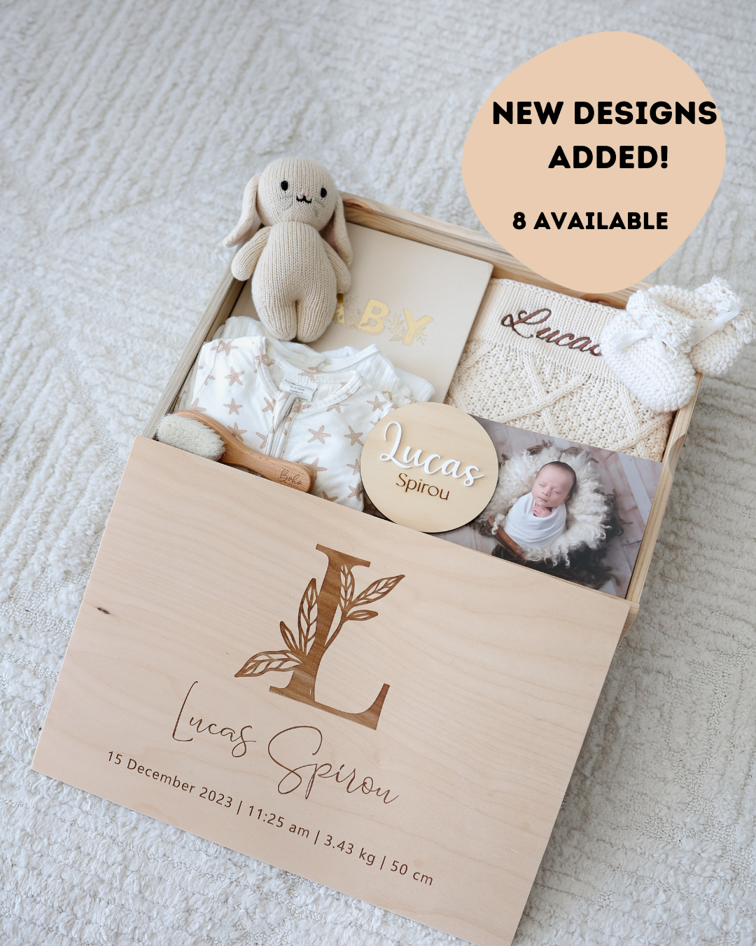 Our Keepsake boxes are especially loved for their impressive large size with plenty of room to keep their baby journals, blankets, outfits, etc.