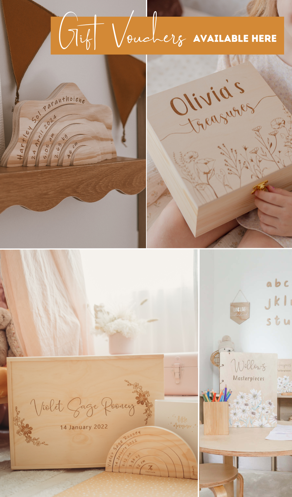 Beautiful handmade wooden Keepsake boxes to store all those sentimental pieces our babies collect over the years.
