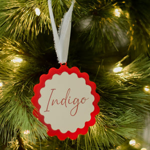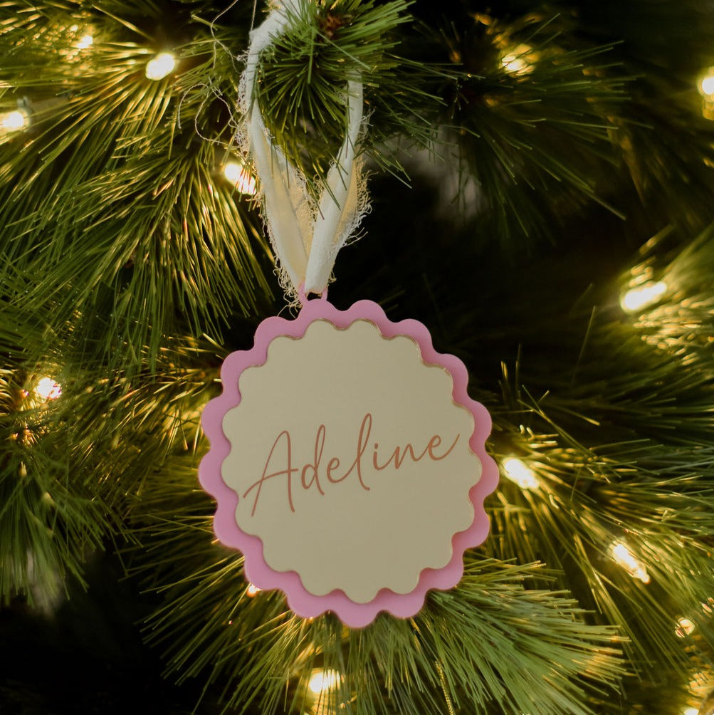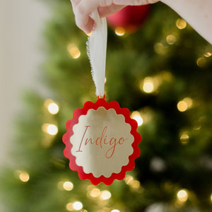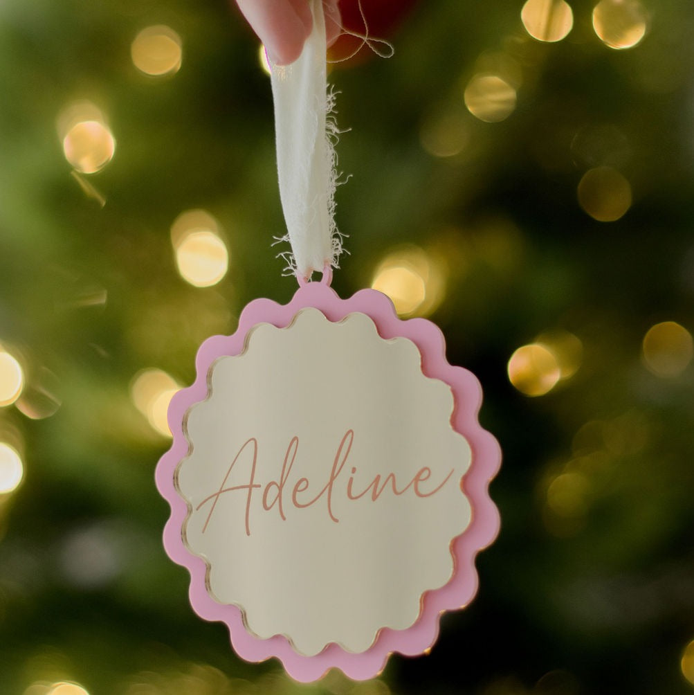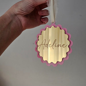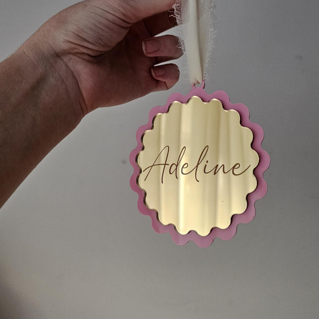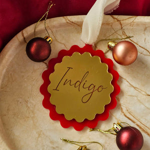 Add a touch of timeless sparkle to your Christmas tree. This layered gold mirror decoration shimmers beautifully against the lights, with your chosen name delicately engraved through the gold. Finished with your choice of backing colour, it’s a keepsake that feels both classic and personal.