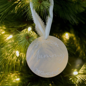 A luxe and elegant personalised decoration in beautiful frosted acryic.