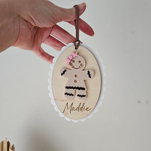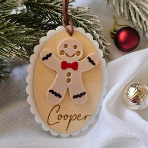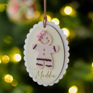 Bring the magic of Christmas baking to your tree! Choose a boy or girl Gingerbread design, complete with icing-style details, a bow tie or hair bow, and your chosen name engraved for that personal touch.