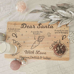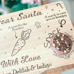 Our Santa snack board is engraved onto a Bamboo board measuring 38cm x 23cm.