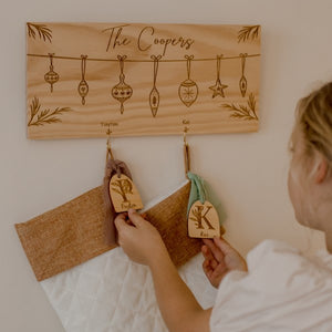You can make your stockings one-of-a-kind by adding a personalised touch. Each stocking comes with a charming timber arch-shaped tag that can be customised with a name in your choice of design. We offer a range of chiffon ribbon colors, so you can choose the one that suits well with your colour theme or the stocking owners personality.