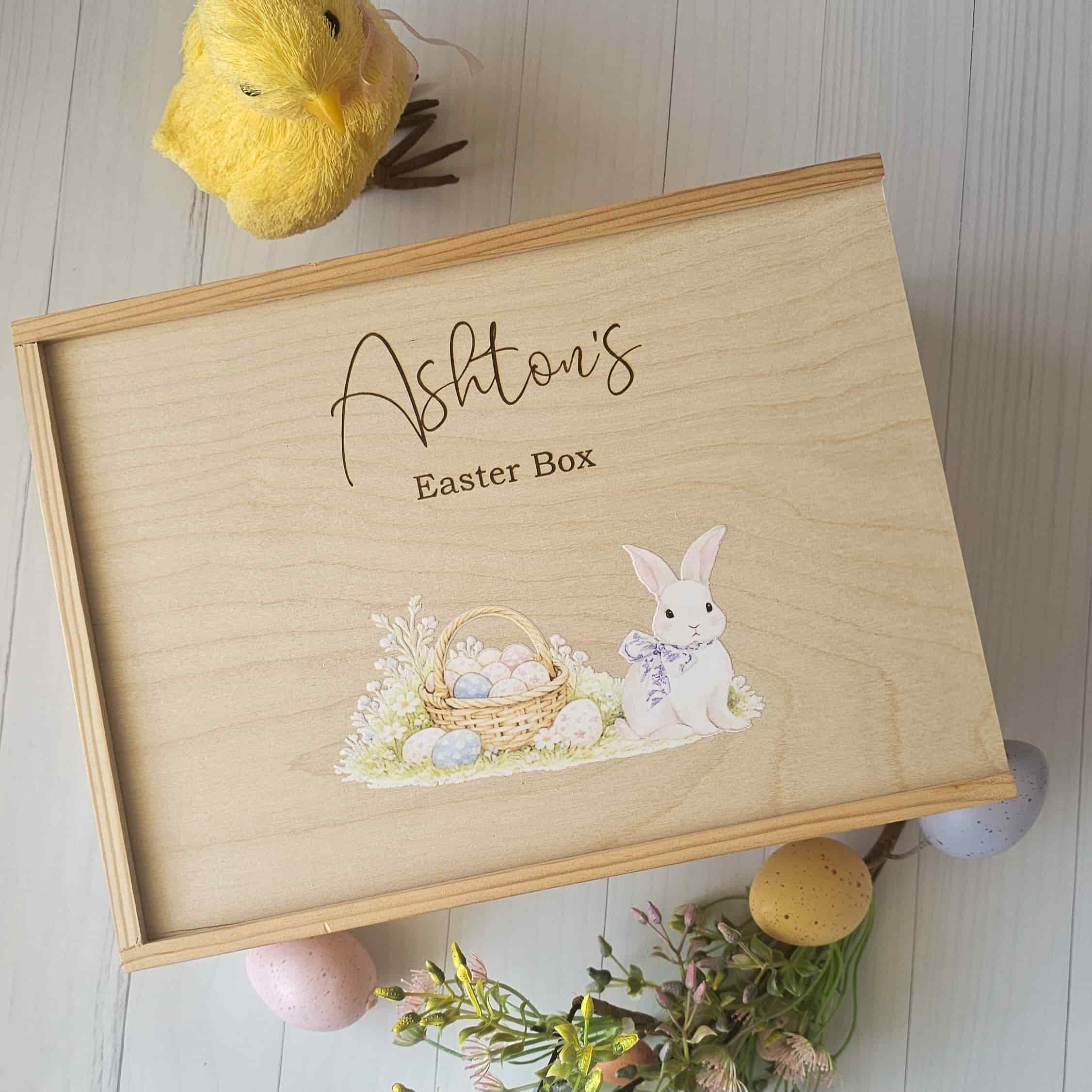 The beauty of our Easter boxes is you can choose to have your lid double-sided so that it can also be used as a Christmas box later in the year! Make sure you flick through the product images to see our beautiful printed Christmas box design too.