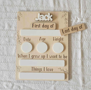 Capture the significant moments of your child's school journey with our First/Last Day of School Board. This gorgeous keepsake is engraved with beautiful botanicals, available in two stunning options: foliage or floral. It can be personalised to make it uniquely your child's or left generic for use with multiple children.