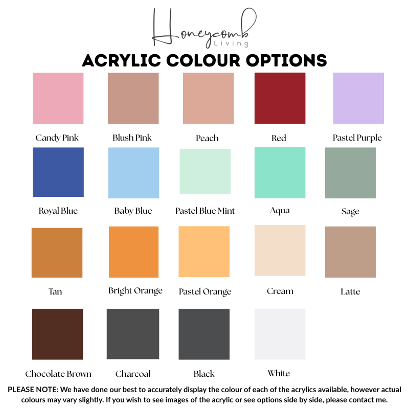 Our plaques are cut from natural timber, therefore the grain of the wood and colour may vary slightly from piece to piece and from the pictures shown.